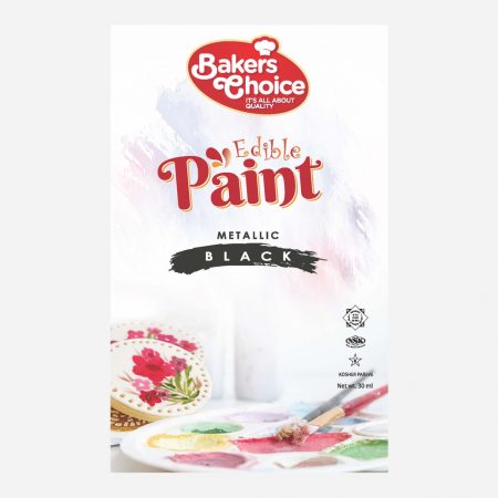 Description: With Bakers Choice Black Edible Paint you can bring a whole new dimension of creativity to your cakes and cookies.Simply apply with a brush, sponge or airbrush for a stunning art finish. Apply two coats for best results – the color is locked in so won’t easily smudge or rub off. use it on chocolate, fondant covered cookies cakes or directly on your baked goods. Turn your cookie into a canvas and let your imagination go wild!
