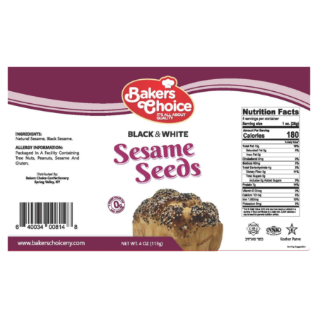 Description: Bakers Choice Black ‘n’ White Sesame Seeds can be used to garnish breads, bagels, biscuits and other baked goods. Also try them with stir-fries, rice dishes, fish, chicken to add crunchy texture and nutty flavor. The black ‘n’ white color will add a nice contrast to your dish.