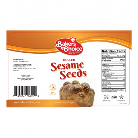 Description: Bakers Choice Sesame Seeds are used by cooks and bakers around the globe. They are known to add a pleasing texture and a delicate nutty flavor in everything, from the basic challah topping to vegetables, salads, sauces and so much more.