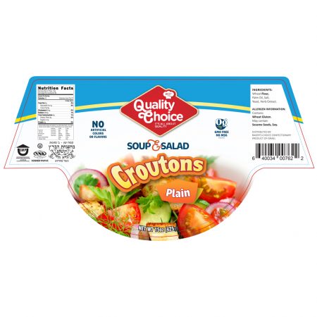 Description: Add a crunch to your menu with these Fresh Gourmet Best choice Plain Croutons. Each cube is perfectly toasted to have a golden-brown color and delicious crisp texture. Our varity of flavors easily accommodated a variety of dishes. Toss some Plain Croutons into a fresh salad mix or try adding some into a hot plate of soup, or simply just nosh on them for snack! These Plain Croutons are even great to crush and put on top of fish to create a twist on a classic dish.